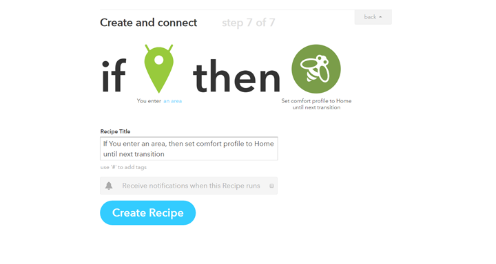Congratulations your IFTTT recipe is complete and your smart thermostat just got a little smarter.