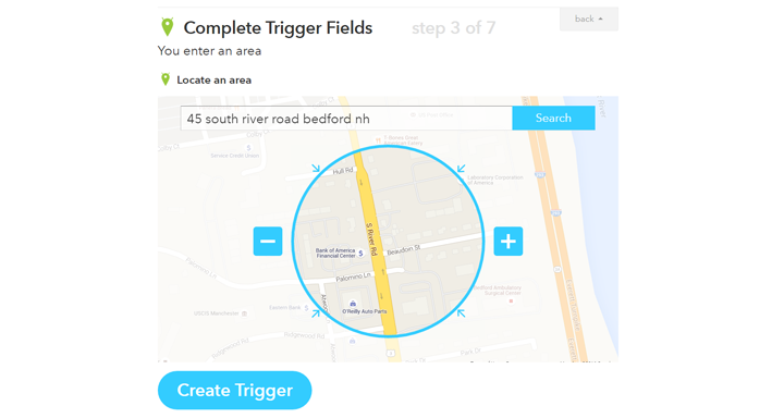 Next you must select the coordinates for the trigger. The larger the area for entering the location the more time your system will have to get to the desired temperature before you arrive. The opposite goes for leaving the location, the tighter the location the more energy you will save.